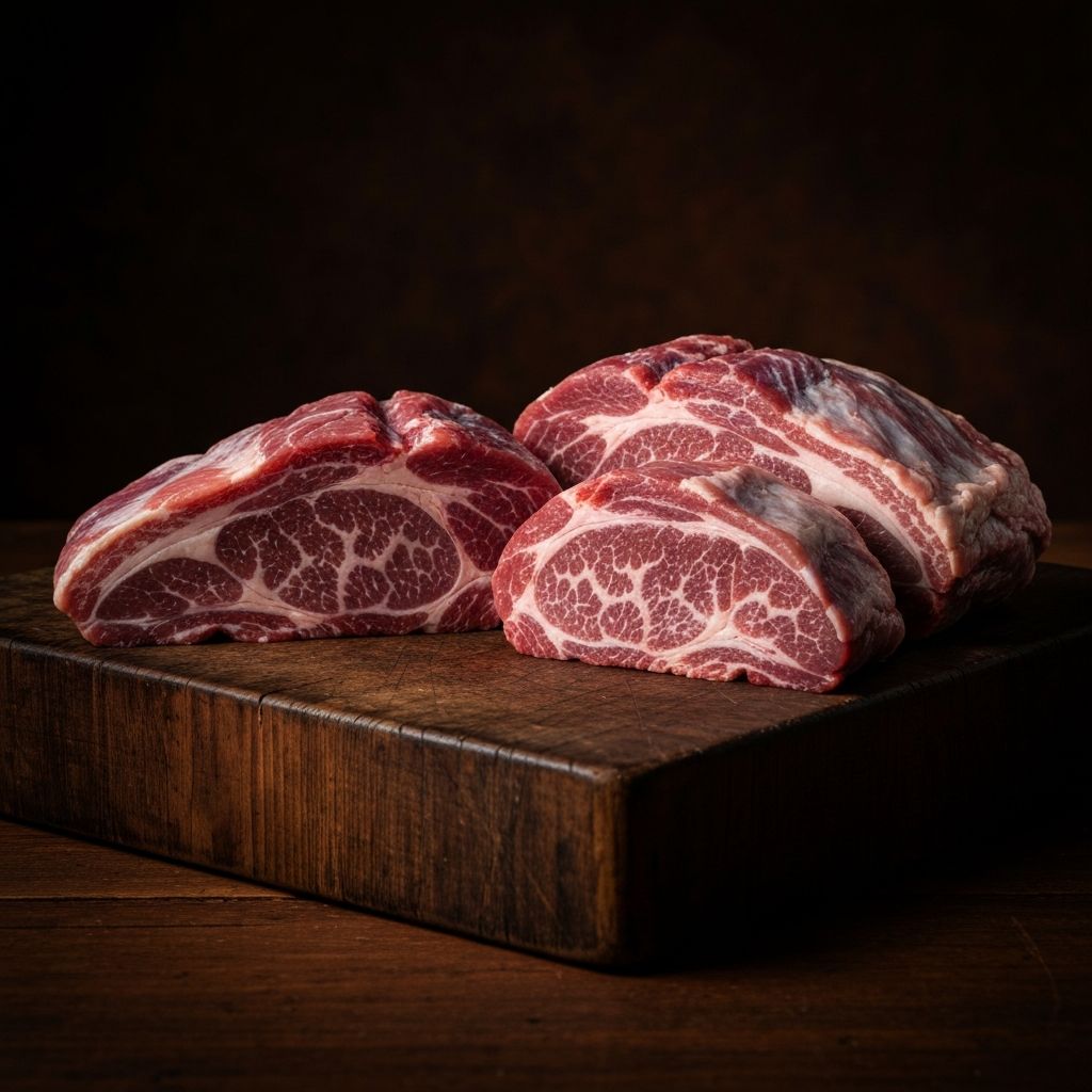 Premium Duroc pork cuts, from rich pork belly to thick-cut chops. Every piece reflects the quality of heritage-breed pork.